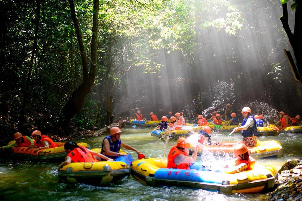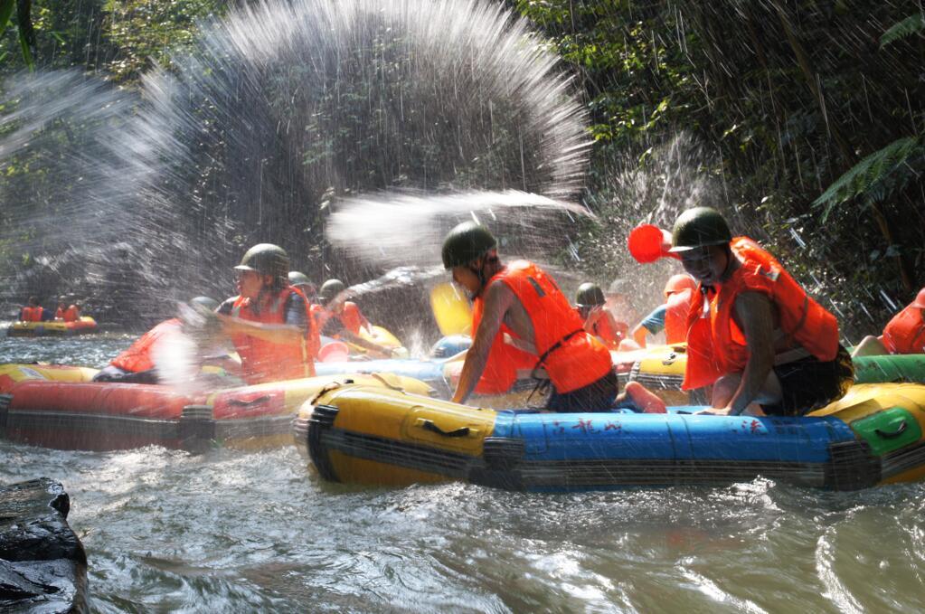 重重包围---原始丛林遮天蔽日,漂流河道终年难见天日,年最高气温仅为22℃。与其他漂流夏季暴晒相比,古龙峡是广东水上项目中号称“不用搽防晒霜”漂流。