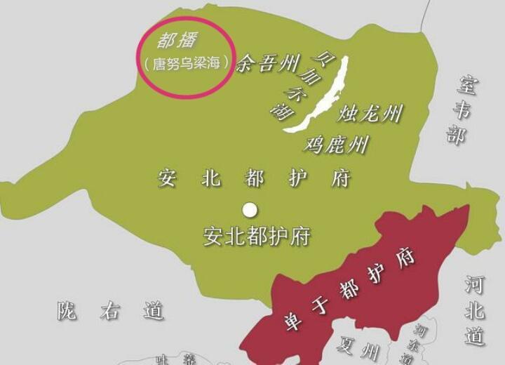 图注:唐朝安北都护府(最北偏西区域即为唐努乌梁海)