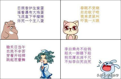 当然,很多家长担心恶搞古诗可能对孩子们有不利影响,小编倒觉得不必过度担心,恶搞毕竟只是一时,而古诗经过千百年的流传,怎会轻易败场。想象,若是没人提及,恶搞的故事可能完全想不起来,但古诗却能常闻于耳。