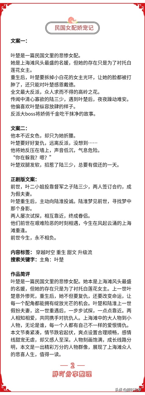 1、偏执腹黑男主vs温柔善良女主,伪兄妹文题材。女主穿书,成为了一个女炮灰,因为太作死很快就被男主弄死了。女主穿书过来后就各种刷好感,因前后差距太大,被男主识破身份,开始接纳。前面部分乡村线,后面是离开乡村后的科举之路。