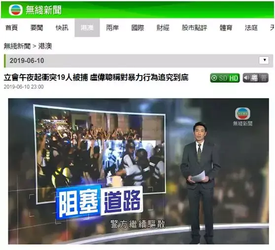2. 近期在香港发生之示威及冲突事件中,无线电视新闻均实时以多角度画面现场直播,让观众第一时间了解现场实况。无线电视成为磨心(两面不讨好),是意料之内。任何对无线电视不恰当的打压,均不会影响本台公正不偏、客观持平的新闻报道原则。