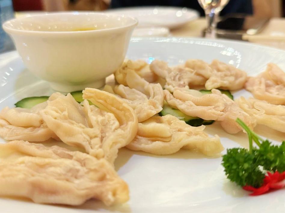 烩乌鱼蛋汤胡椒味比较重,非常开胃解腻,汤鲜味美,唇齿留香。