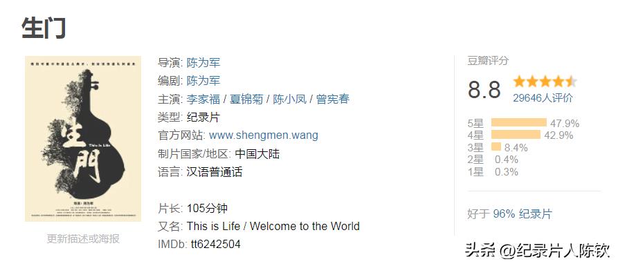 《生门》是2016年度中国最具影响力十大纪录片,2017年北京国际电影节纪录单元最佳中国长片。豆瓣口碑炸裂。