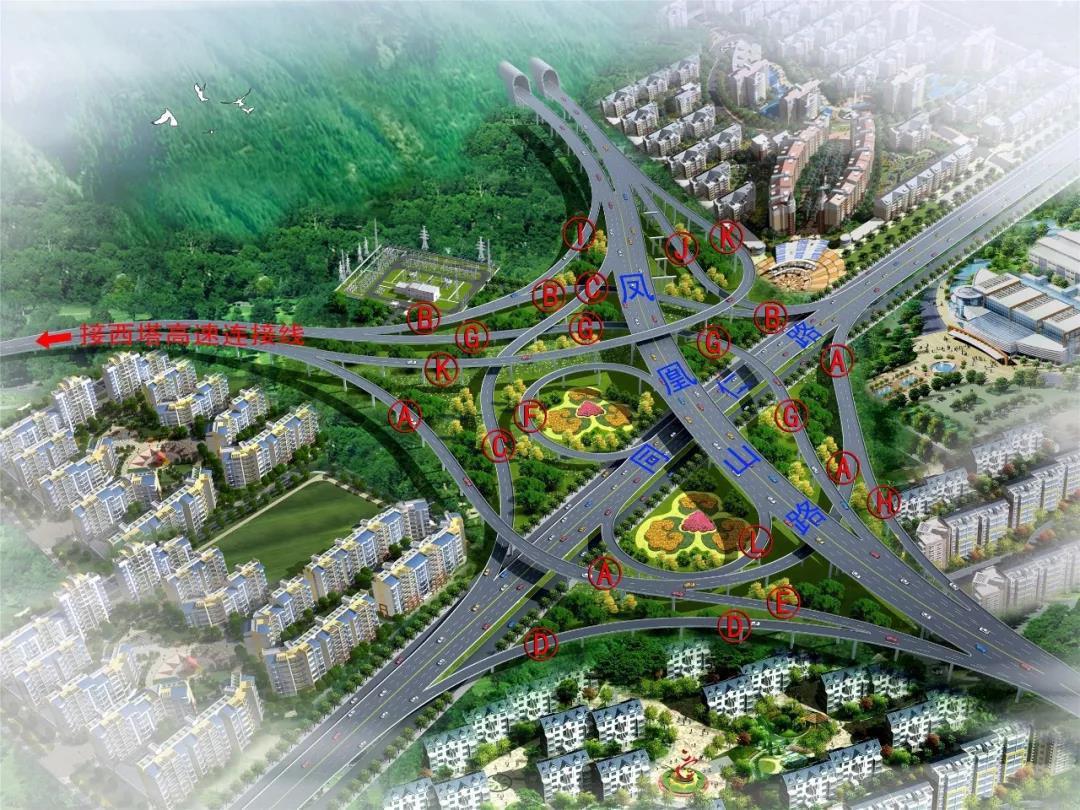 G匝道通过定向匝道与B匝道相接,承担凤凰山路东向南与西塔高速连接线的交通转换,由东向南经新西塔高速通往沈家寨、城南新区;
