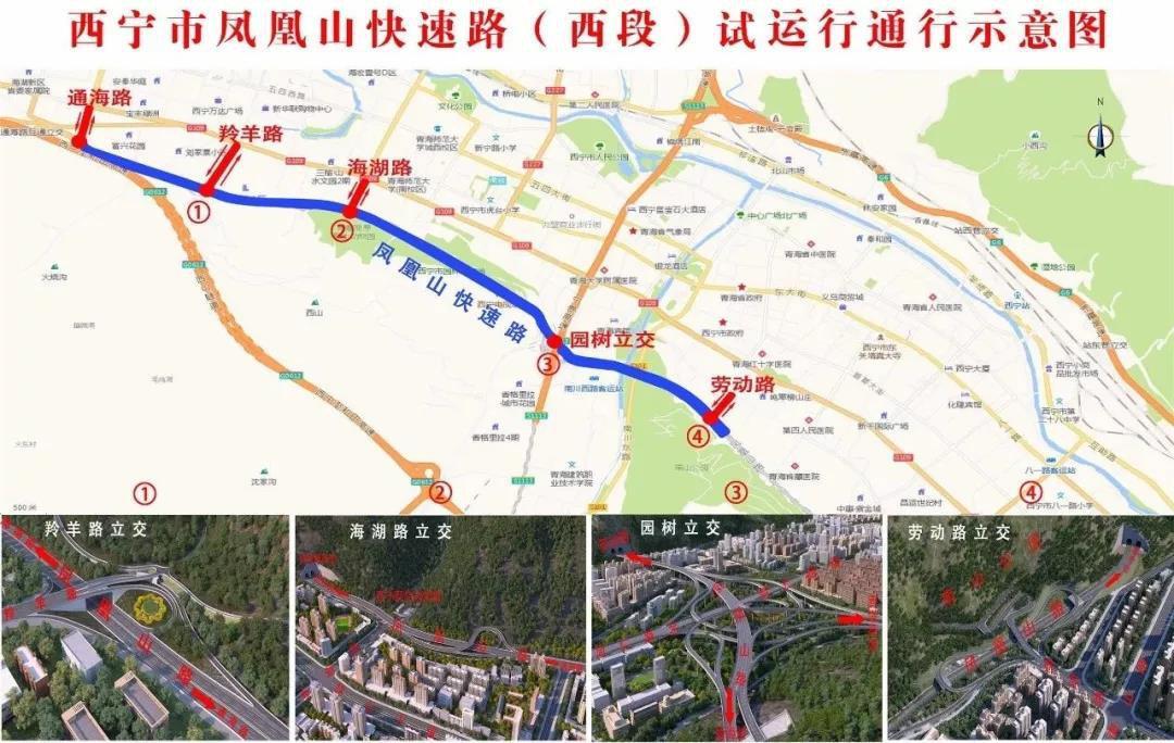 从通海路出发,一路向东,凤凰山快速路全线有通海路、羚羊路、海湖路、园树立交、劳动路、建国南路(德令哈路)、湟中路7处下线口。