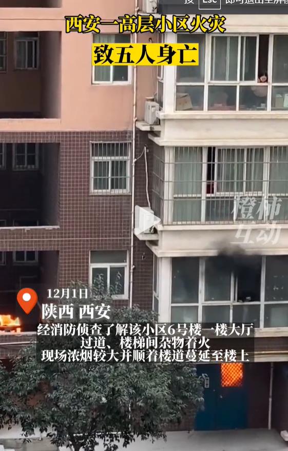 12月1日,西安市未央区凤鸣华府小区中午发生火灾,这次火灾从1楼火烧到20楼,5人死亡,3人受伤。