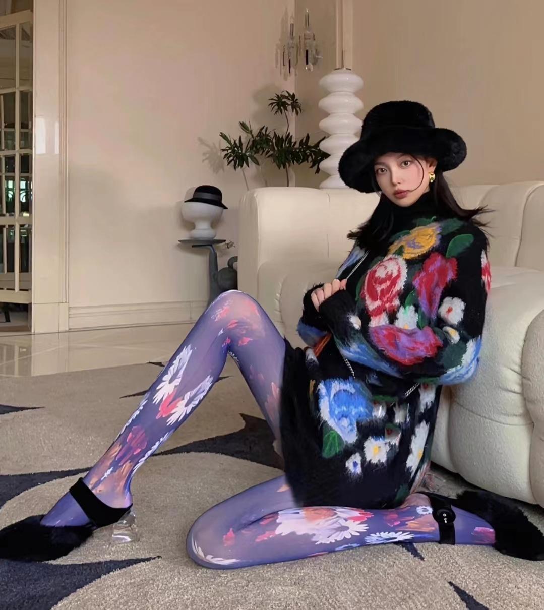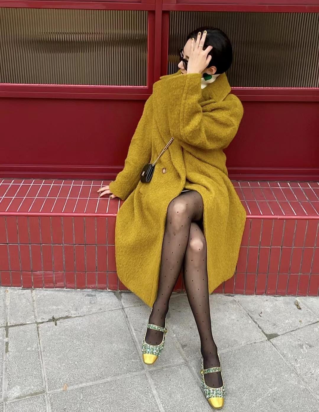 虽然冬天是个色彩单调的季节,但是过于鲜艳/花哨的丝袜会让整体造型显得过于突兀,不够协调。