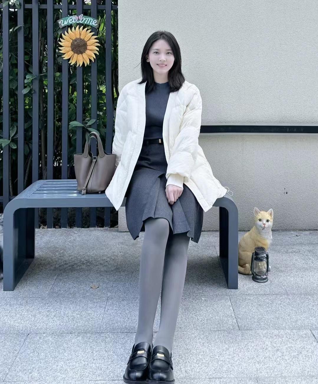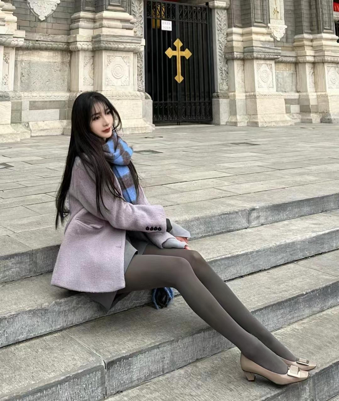 肉色丝袜具有自然、轻盈的特点,适合搭配浅色或裸色的裙装。肉色丝袜能够给人一种温暖柔和的感觉,让你的冬天穿搭看起来更加轻盈。