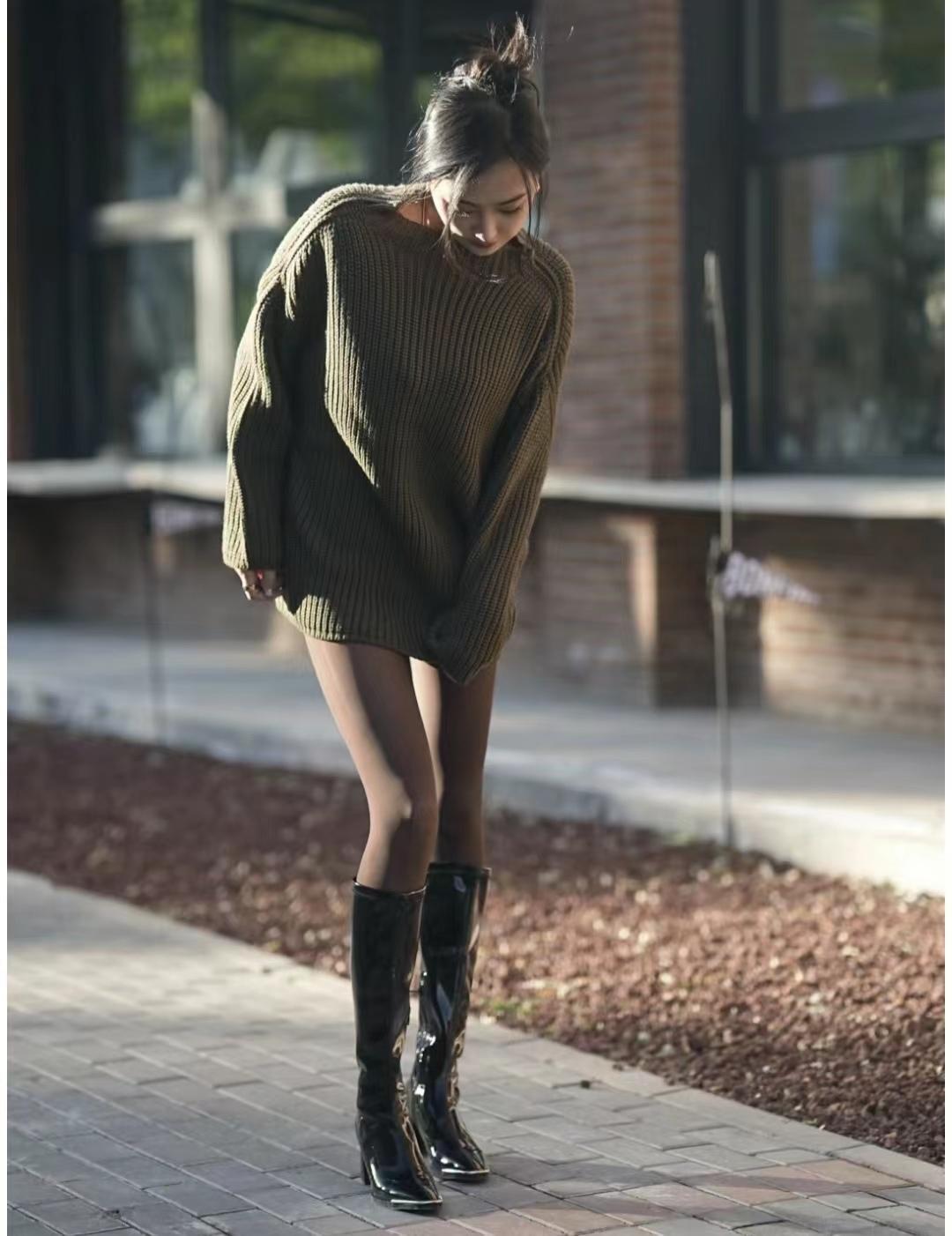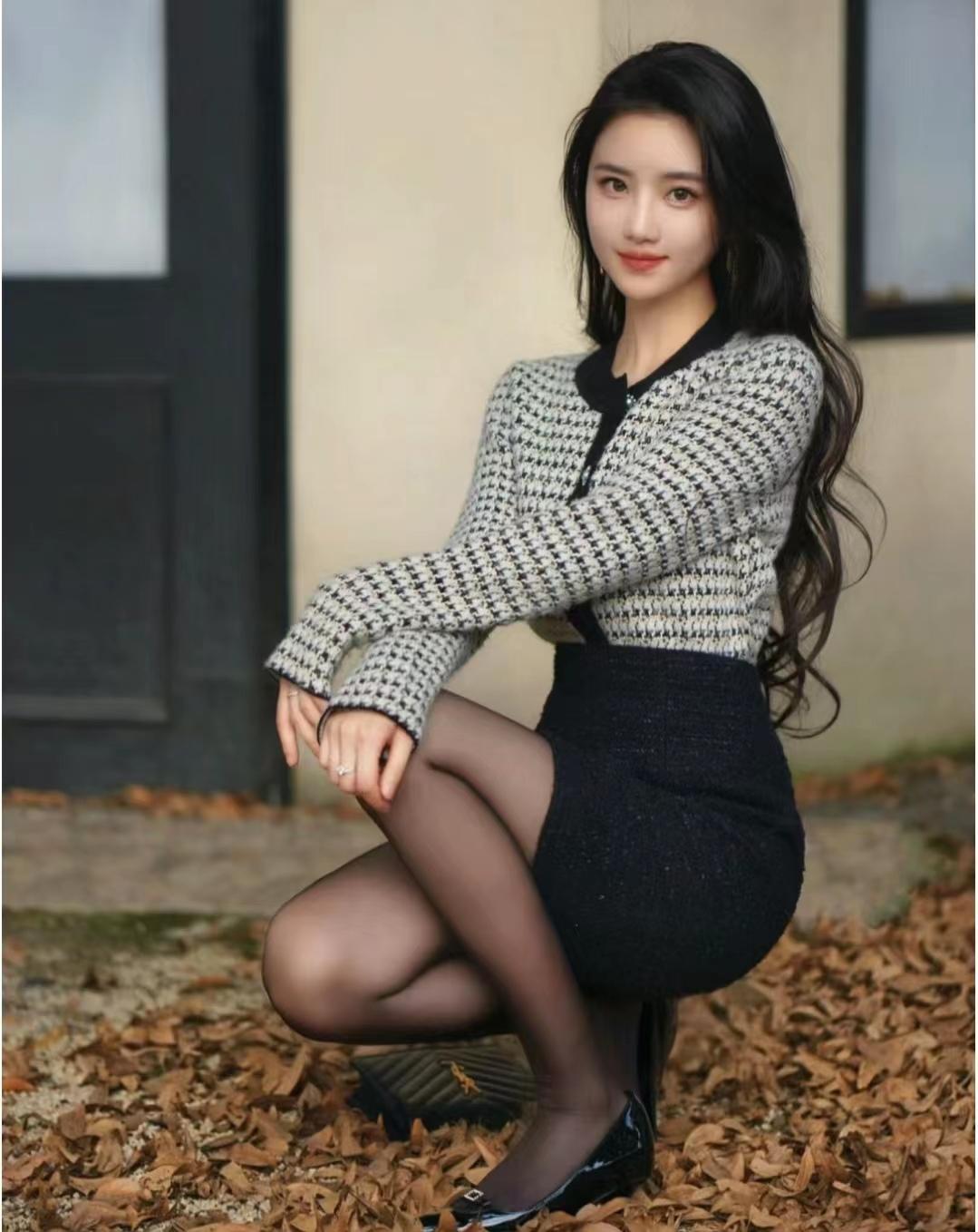 深色丝袜在视觉上具有显瘦效果,能让腿部线条更加修长。同时,深色丝袜给人一种神秘、优雅的感觉,适合搭配冬季的深色系服装。