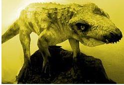 狂齿鳄生活在一亿九千五百万年前的中生代三叠纪和侏罗纪,体长可达12英尺,性情凶恶贪婪,是当时湖泊中的顶级猎食者。常常潜伏在溪流和湖泊中,仅将鼻孔露出水面,捕食鱼类或其他动物。