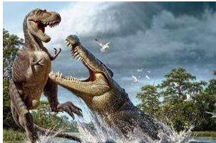 普鲁斯鳄是否能杀霸王龙,显然一般的霸王龙10.7米已经比7.2-7.9吨(对应普鲁斯的18吨),