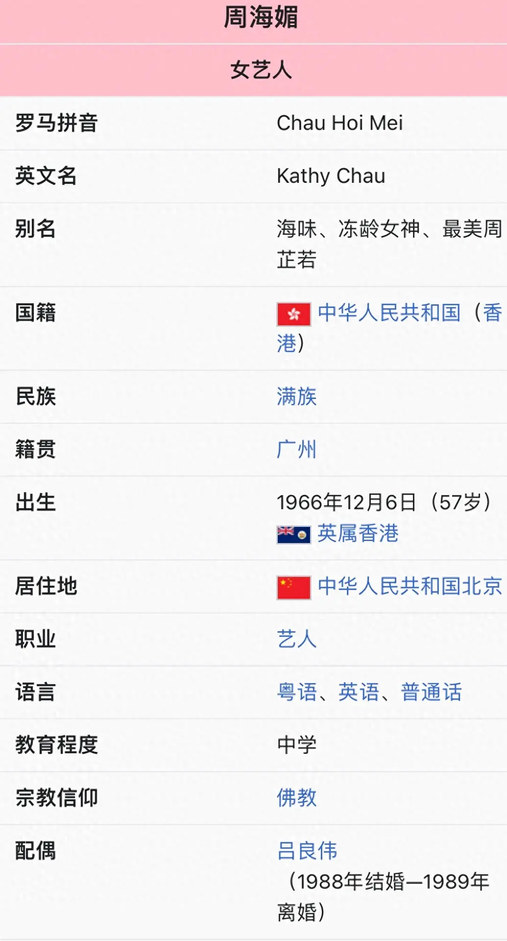 大家都想知道的周海媚官方简介