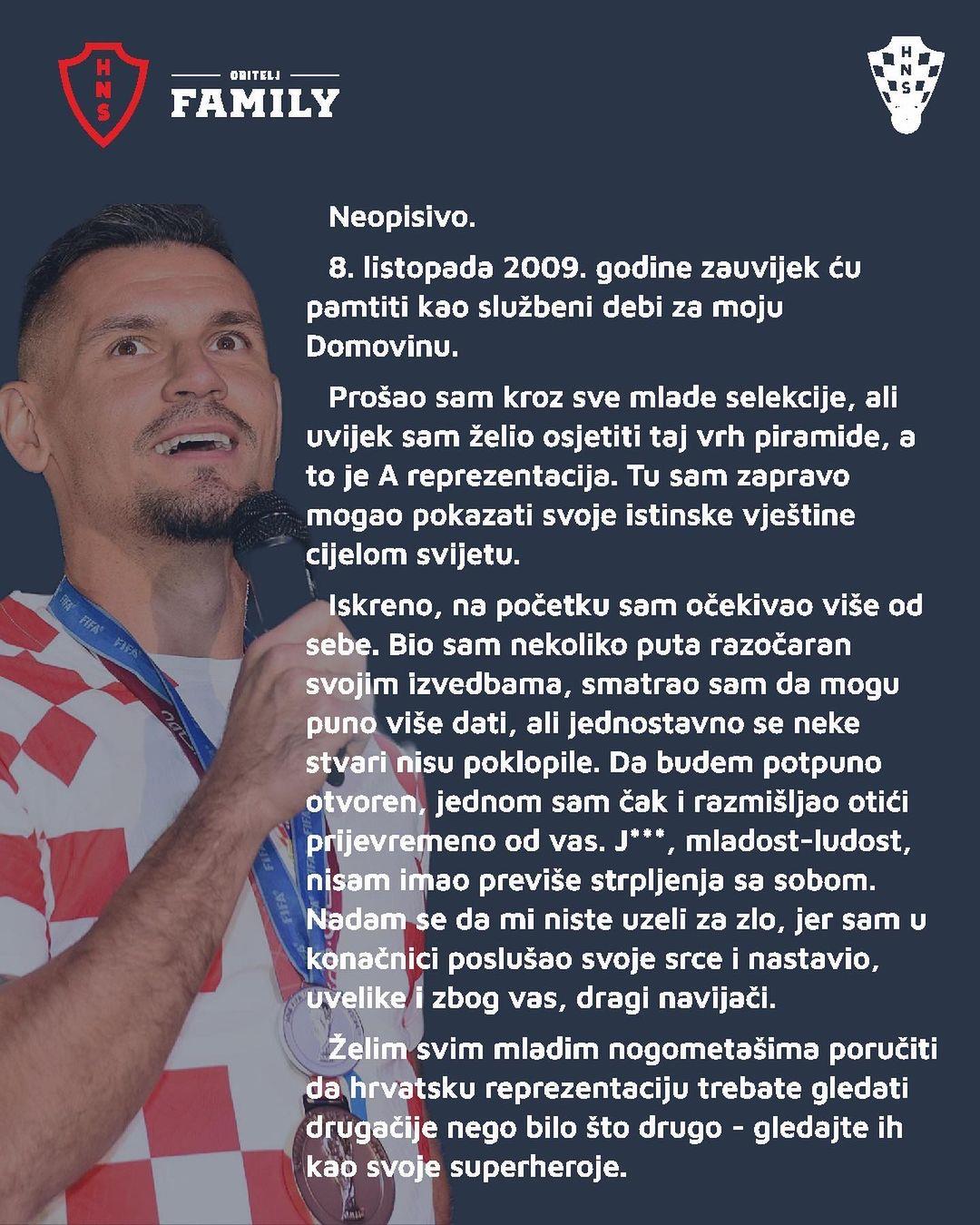 我和克罗地亚国家队说再见的时刻到来了,当然我永远会是国家队的超级粉丝,会关注球队未来的每一场比赛。