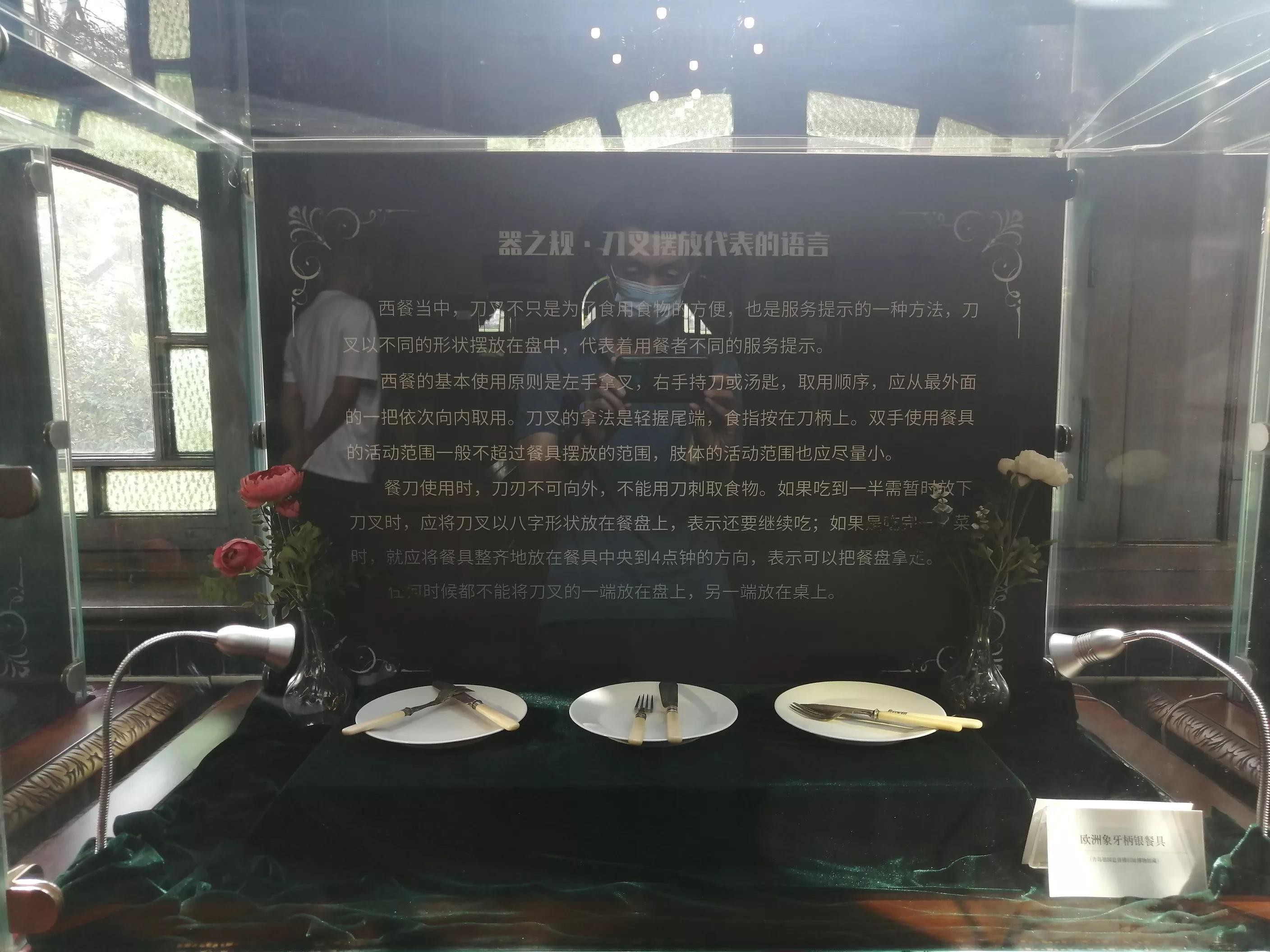 现场有餐具展示。这里不仅有刀叉,还结合文字介绍了使用刀叉的礼仪。