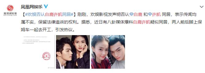 许凯白鹿被曝恋情已同居 欢娱发声明否认:均属不实