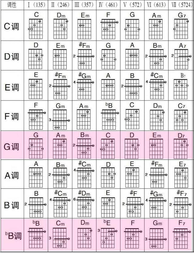分享一个比较常用的和弦指法图给大家,需要的拿走。