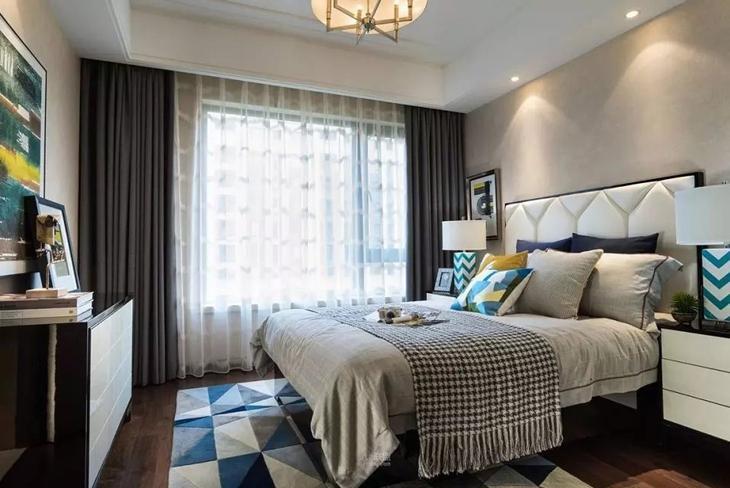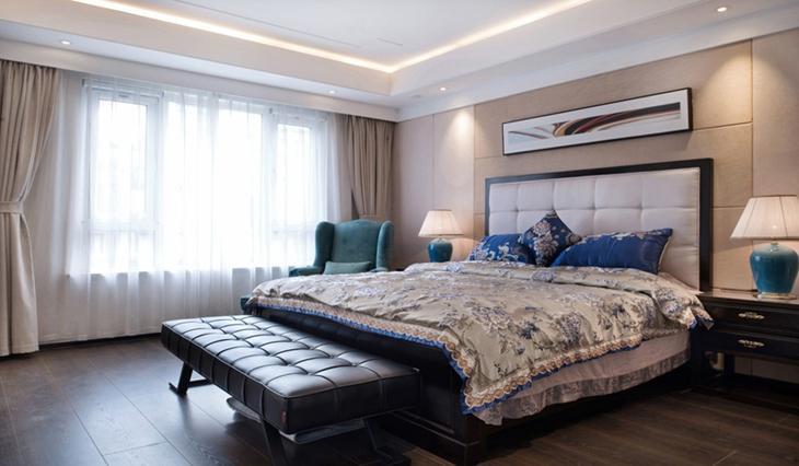 160平美式小复式卧室床头软包图片