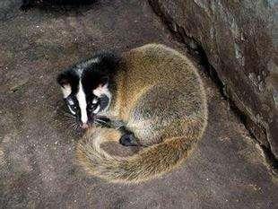 学名花面狸(学名:Paguma larvata taivana 英文名:Swinhoe)属于食肉目、灵猫科、花面狸属的一种珍贵的野生动物。体色为黄灰褐色,身体略胖,颈部粗短,和身体不易区分。现有17个亚种,中国有9种。所属的花面狸属只有这一个物种,与本科其他物种同属于食肉动物中的原始类群。