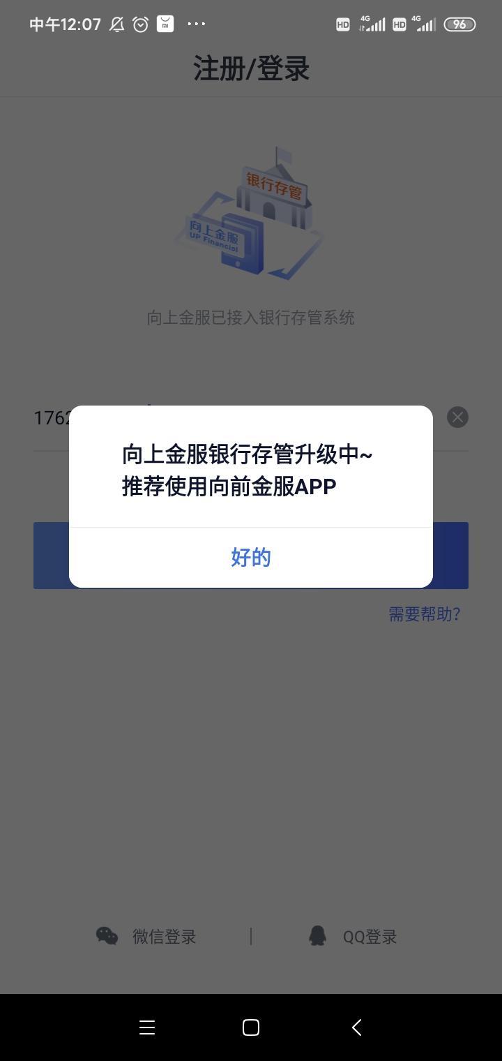 今天打开向上金服app,登不进去!