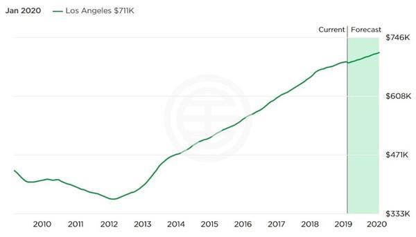 Zillow洛杉矶房价指数走势图(2009-2020年预测)