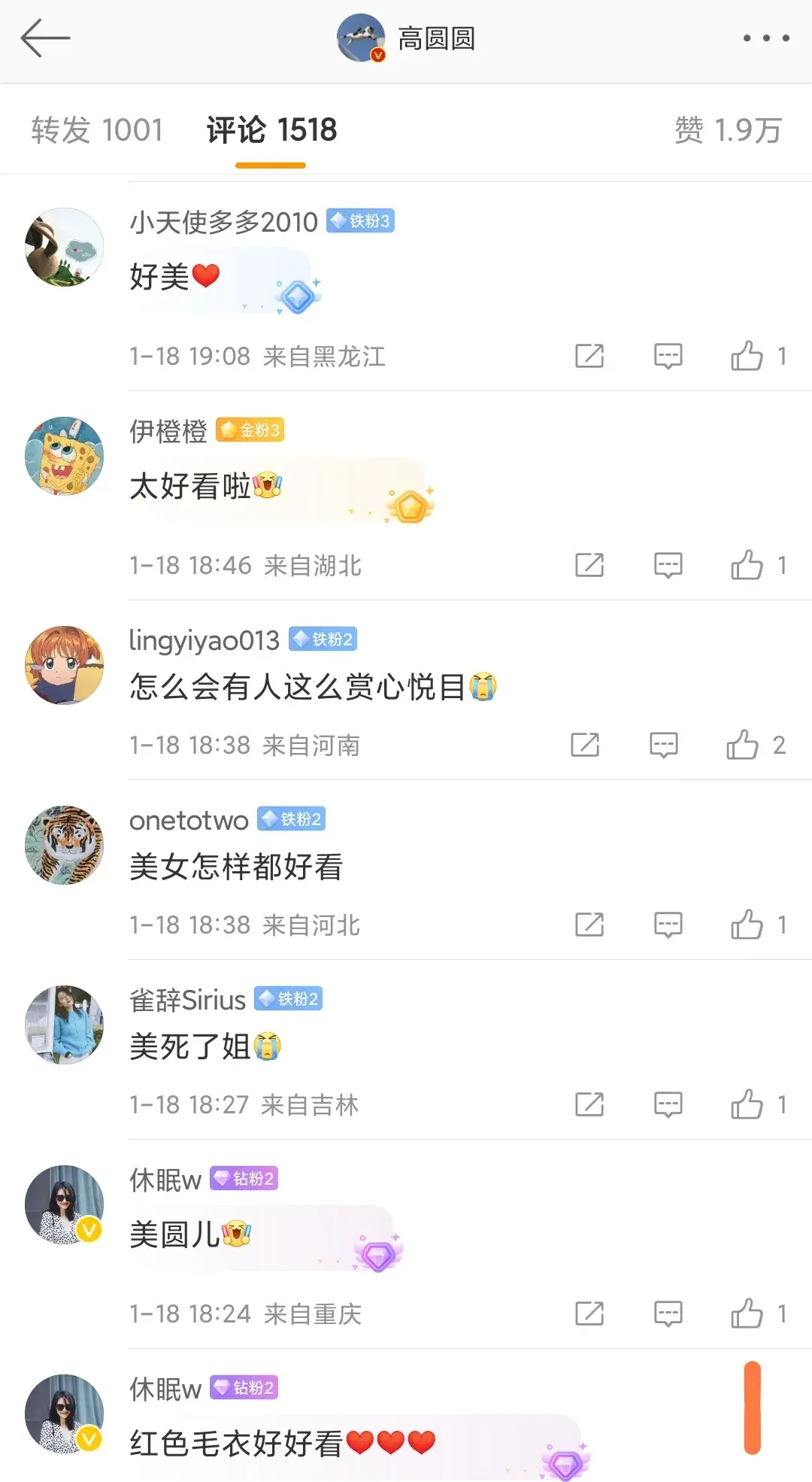 #1月18日,高圆圆微博发布了最新动态,照片中的高圆圆笑容明媚,可以看出心情很不错,姐姐真的超级美#