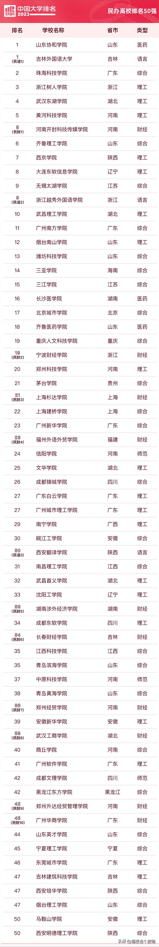 本文从2023软科中国民办高校排名总榜中,提取了位于全国50强区间内的民办高校(含民办单科类参考排名)。它们实力与特色兼具,是中国民办高校的最强代表!