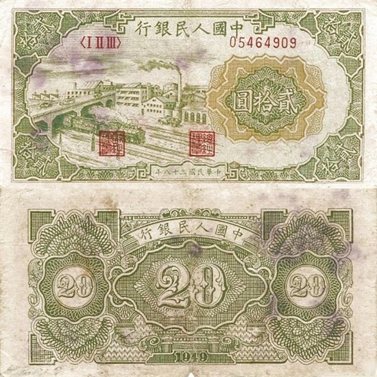 打场20元是1949年9月发行;万寿山(乙)20元是1949年10月发行,这些第一套人民币的20元纸币我原来手头是有收藏的,但早些年忘记是什么原因给换掉了,当时的价值不是很高,现在这些20元的纸币都在几千元到上万元了,真的很可惜,所以如果大家手头有还是不要轻易换掉,就算是1999年版的20元,品相好的,现在也翻倍了,第五套人民币的收藏是注重号码的,如果遇到全新的、号码好的20元的纸币,建议大家还是收藏起来吧,尤其是1999年版本的。