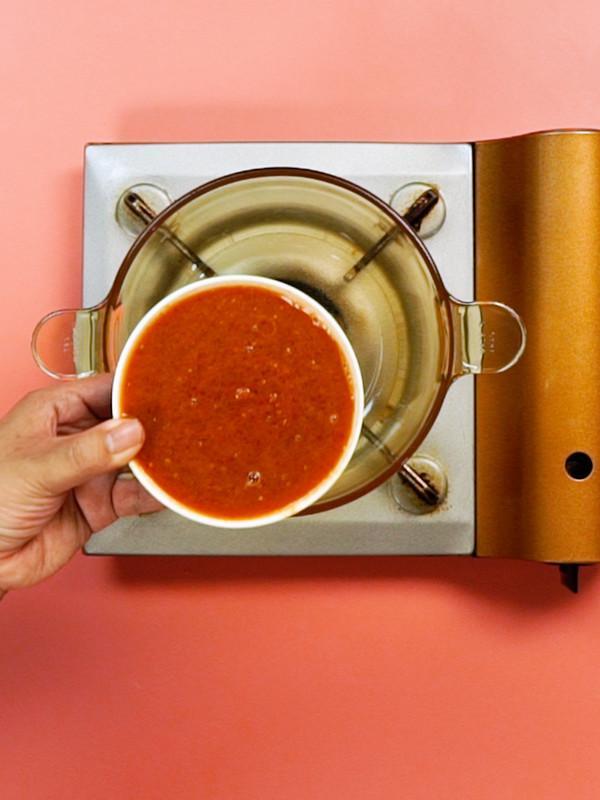 将打成泥的倒入锅中后加入黑糖