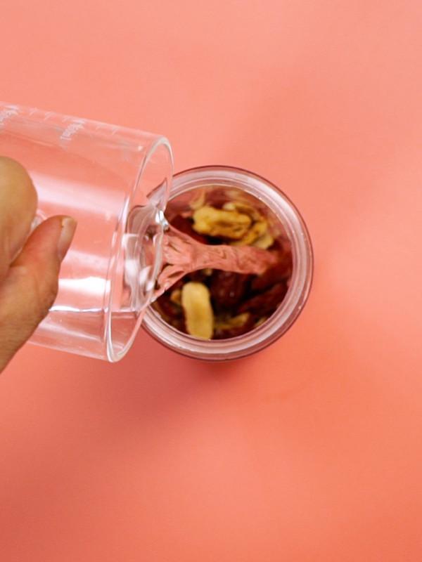 将黄姜红枣枸杞一起加水打成泥