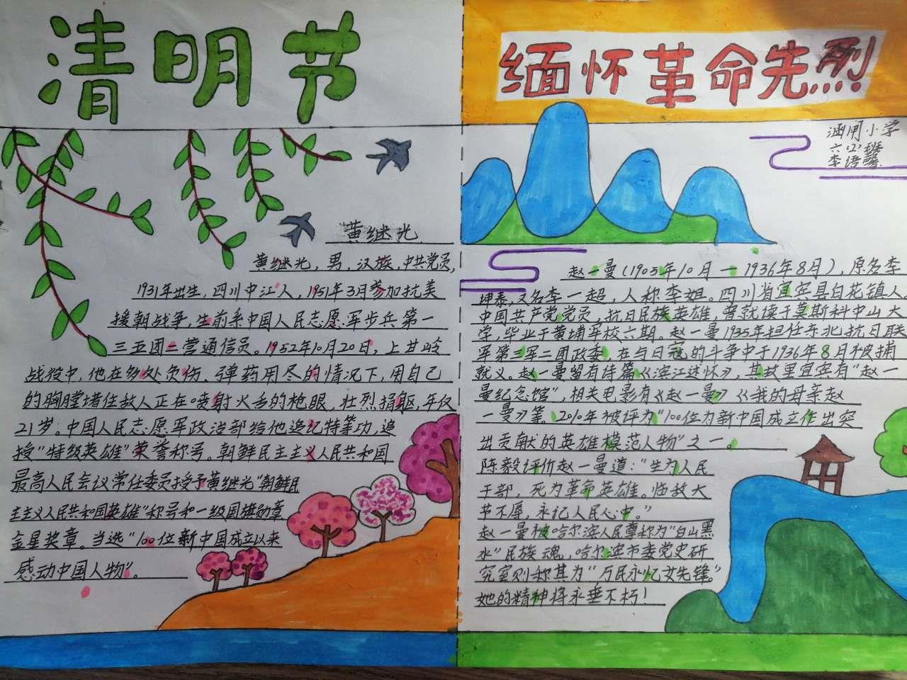 2020清明节,正值新冠肺炎疫情防控的攻坚期、关键期。涵闸小学贯彻疫情防控期间少出门、不聚集等有关要求,巩固防控成果,预防疫情传播扩散,倡导安全祭祀,推进移风易俗,营造文明、环保、节俭、安全的良好祭祀氛围。我们六(2)学生通过手抄报,用他们的灵巧的小手和优美的文笔,表达了对革命先烈的哀思,并对牺牲在抗疫一线的英雄们致以崇高的敬意!!