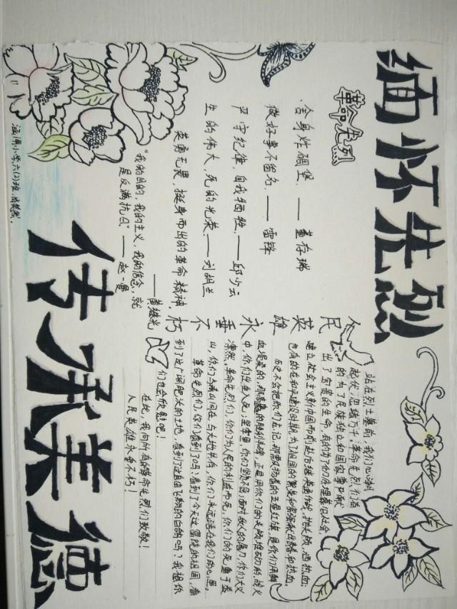 缅怀先烈,传承文明-涵闸小学六(2)班主题手抄报展