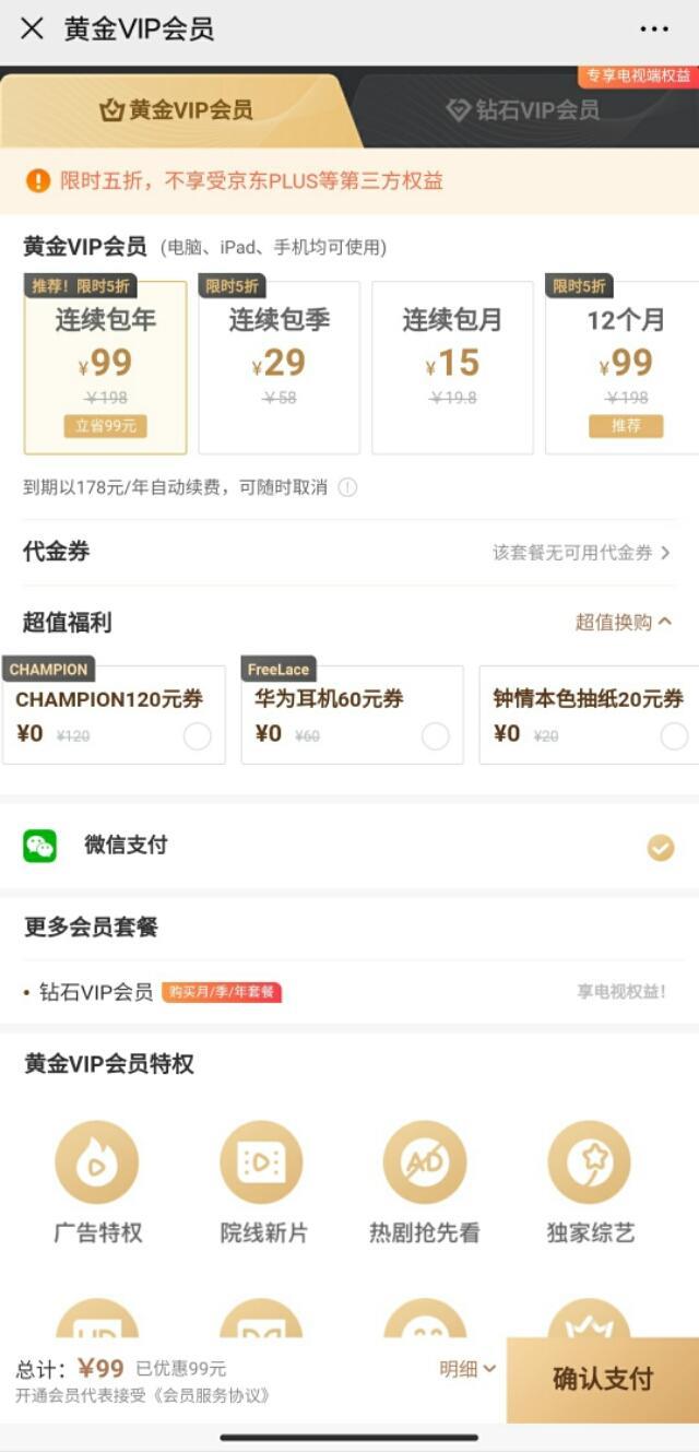 5折爱奇艺-爱奇艺黄金会员年卡限时99元,加0元即可换购价值200元礼包,不买就亏啦!(可以分享转发给需要的朋友圈!)