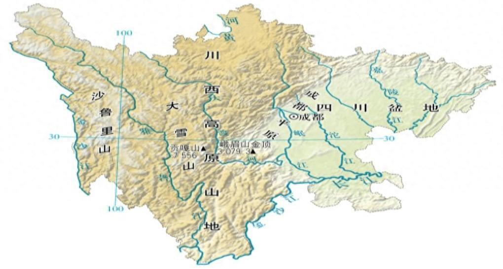 四川位于我国大陆地势三大阶梯中的第一级和第二级,即处于第一级青藏高原和第二级长江中下游平原的过渡带,高差悬殊,西高东低的特点明显。西部为高原、山地,海拔多在4000米以上;东部为盆地、丘陵,海拔多在1000~3000米之间。全省可分为四川盆地、川西北高原和川西南山地三大部分。(四川省人民政府)