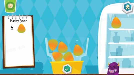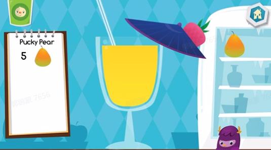 以榨汁游戏为例:屏幕左侧会显示出需要的数量,然后孩子可以在右侧取正确数量的水果来进行榨汁。榨汁结束后,会有一个模拟“喝果汁”的场景,让孩子更加有带入感,适合低龄幼儿理解数字、学习数量的概念。