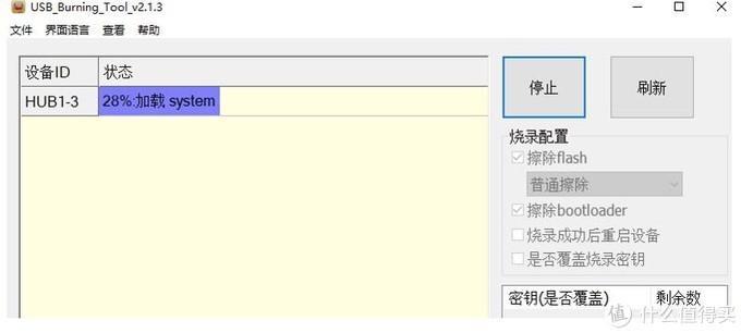 通电后烧录工具会开始工作,有烧录进度后 短接线可以拿开,可以进行下一个玩客云的烧录工作了,烧录期间如果出现错误,快速拔插USB线即可,如果没反应就重来。等待烧录完成即可拔掉USB线和电源。