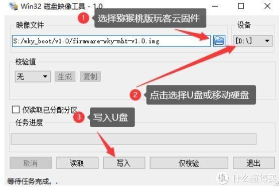 将 firmware-wky-mht-v1.x.x.img 用 win32diskimager 1.0 写盘工具 刷入U盘