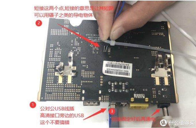 最后将写入猕猴桃固件的U盘或移动硬盘, 插入玩客云距离网口最近的USB口