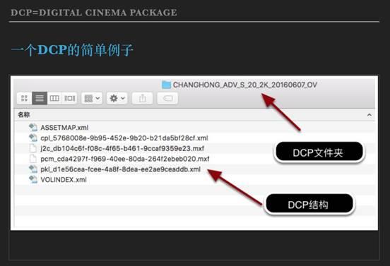 DCP其实就是我们用于电影放映的一种专用格式,不同于MP4、MOV这些格式,DCP不是一个单一的文件,而是由一系列的文件组成。