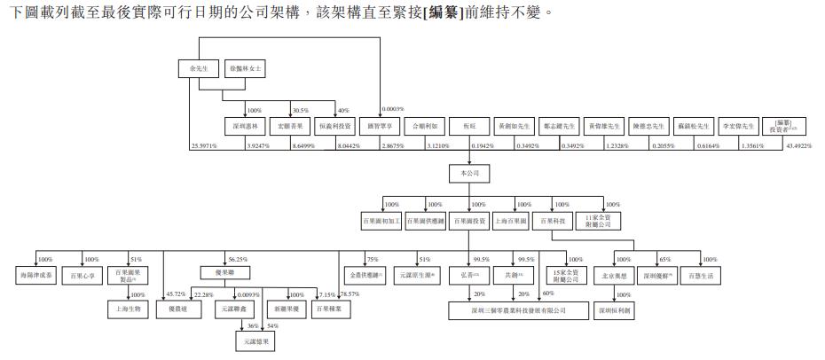 目前,百果园的机构及个人投资者多达35名。此次IPO前,余惠勇、徐艳林夫妇及员工持股平台为百果园的控股股东,其中余惠勇及徐艳林直接、间接持股超35%,为百果园最大股东,而投资方共计持股约43.5%。