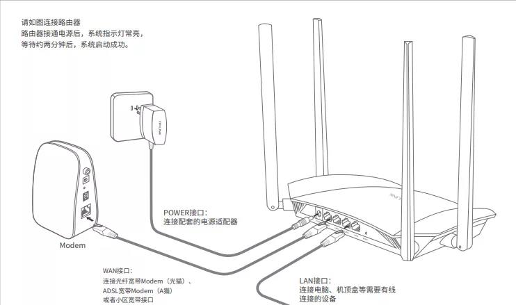 (2)如果路由器的网口下方显示:WAN 和 LAN 或者 WAN 和 1、2、3;这种情况下,必须确保路由器的WAN口连接电信光猫(入户网线),LAN口用来连接电脑或其他有线设备。