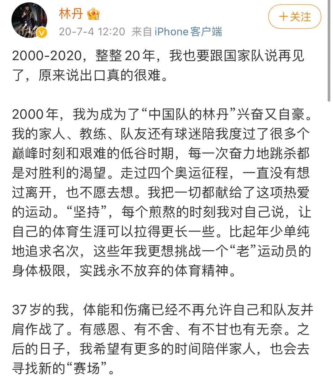 李宗伟告别了自己的羽毛球生涯,林丹第一时间分享单曲《朋友别哭》,并配文道:独自上场没人陪我了。