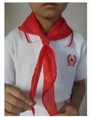 红领巾颜色采用国旗红,可用布、绸、缎等材料按照标准制作。