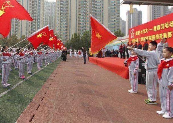 上面这面队旗是错的,星星火炬不居中,快检查一下你们的大队旗吧~