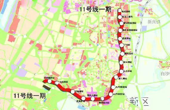 成都地铁11号线:规划将起于金堂县三星,经青白江、新都、沿中心城区南下、连接天府新区、止于双流黄龙溪。远期路线全长112.48公里,是中心城和天府新城双核联系的快线放射线。其中一期工程共设18个站点,起于6号线一期的观东路站,经天府CBD西部博览城后,止于5号线二期回龙路站附过的回龙路西站。计划于2017年启动建设,2020年建成!