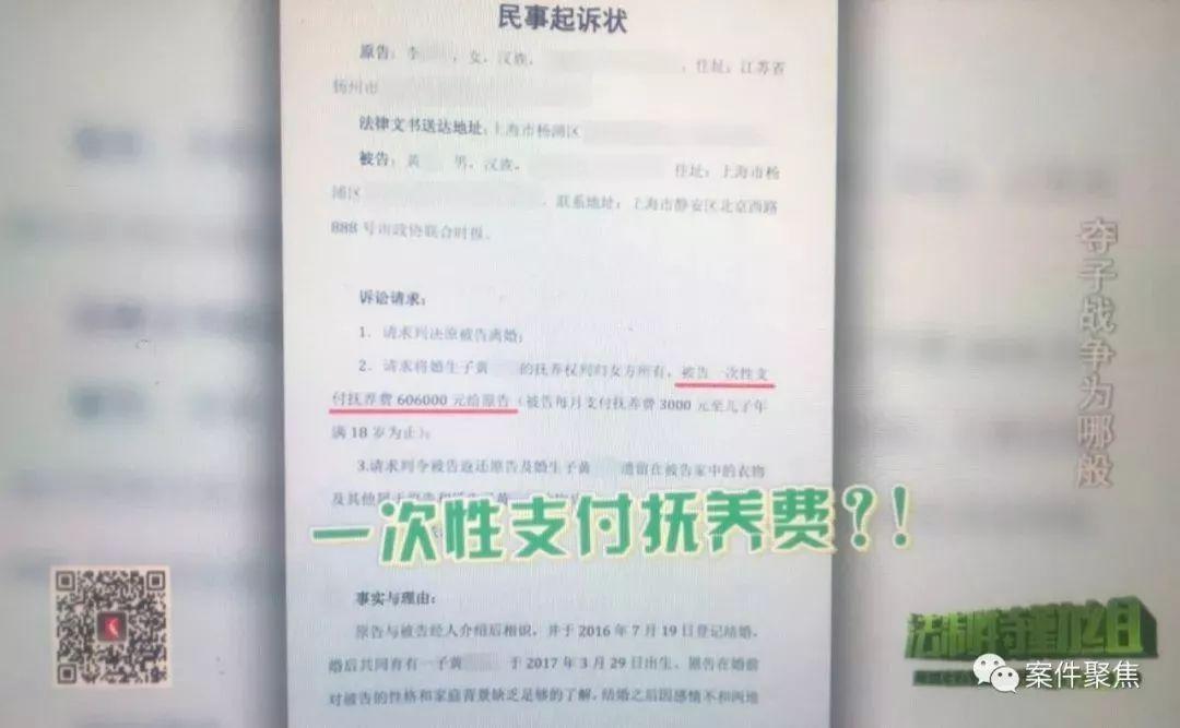 接着提出离婚诉状又报出了一口价:60万元抚养费,