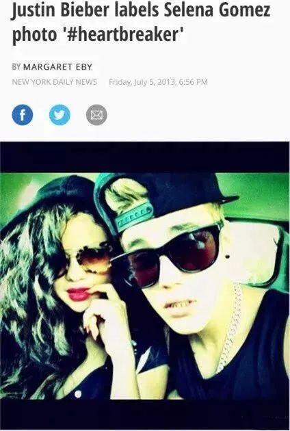 一次,比伯在推特上晒出他和傻脸娜曾经的恋爱合影,配图文字是:心碎的人。