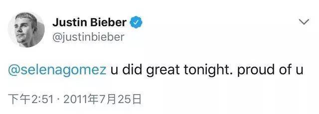 2009年,刚出道的比伯第一次遇见傻脸娜。两人都是单纯青涩的年纪。比伯见到傻脸娜后他发了这样一条推特: