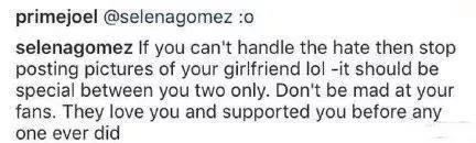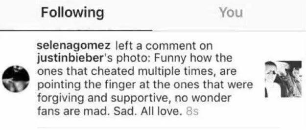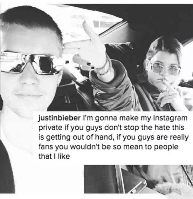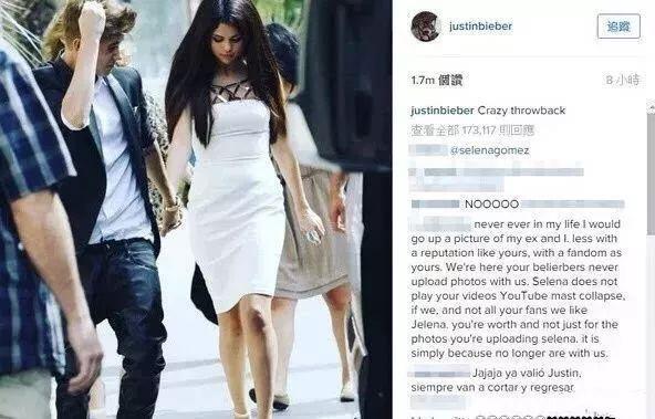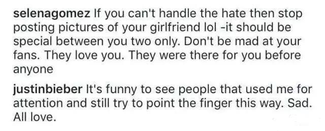 最后比伯为了维护新女友,生气的写到:
