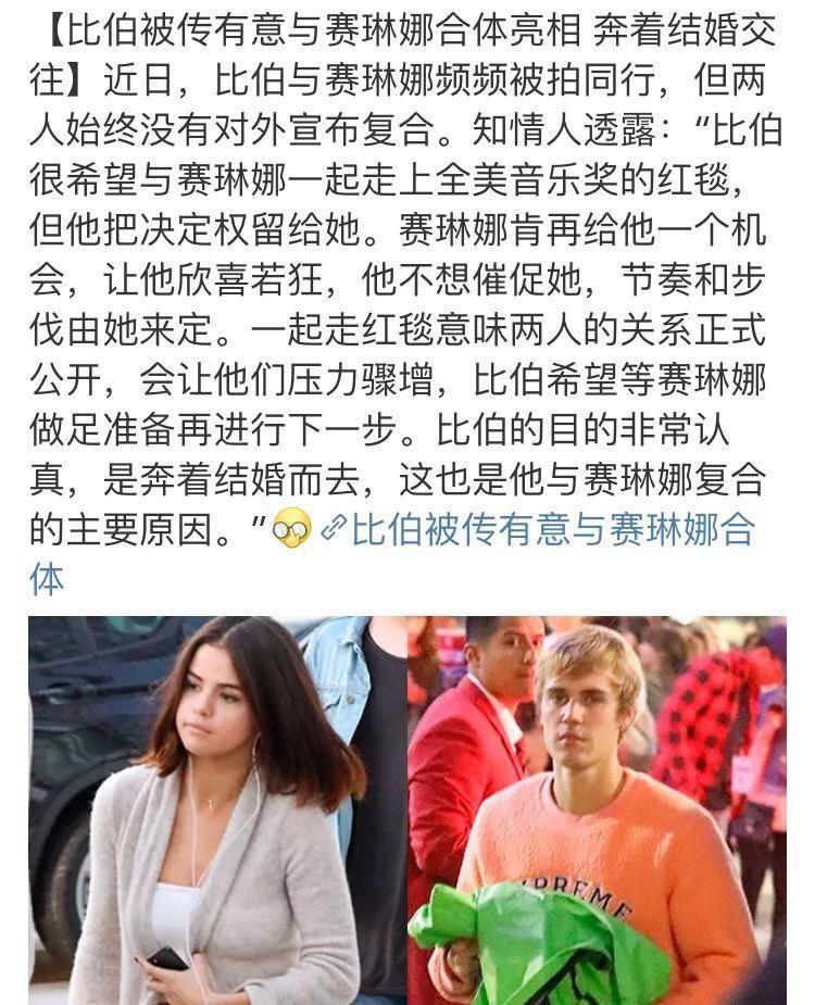 最后就是我们现在看到的二人的状态了,傻脸和比伯再一次复合。并且比伯还透露:这一次是奔着结婚去的。