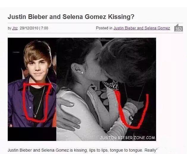 不过当时网上有张接吻图流传了出来,虽然没有正面照,但很多人猜测就是比伯和傻脸娜。还有网友做了对比,比伯的项链和接吻男是一样的。